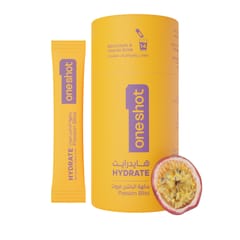 ون شوت ترطيب يومي خالٍ من السكر. معادن وفيتامينات متعددة بنكهة الباشن فروت المنعشة (١٤ ظرف)